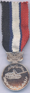 silver stripes between the black and red each of 1 mm. . Instituted: 1982 Awarded: Grades: 1 Class, this is a second model of medals made to commemorate the September 26, 1962 revolution. You can see the commander who lead the revolution on the Obverse, the Reverse shows the date 26 September in Arabic and a hand holding a lit Torch Price: $ 60 Rare |